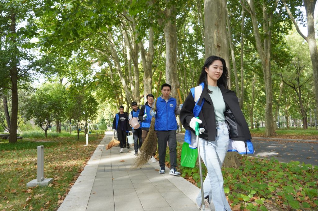大家拿起工具,躬下身子,进行地毯式的扫除。同学们穿梭在校园的每个角落,主楼前的广场上、大马路旁、静园小道里,到处都有同学们忙碌的身影。扫地、拾落叶、清运垃圾,各项行动有序进行。