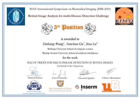 世俱杯sjb官网谷云超团队获IEEE ISBI 2021 Retinal Image Analysis for multi-Disease Detection竞赛季军
