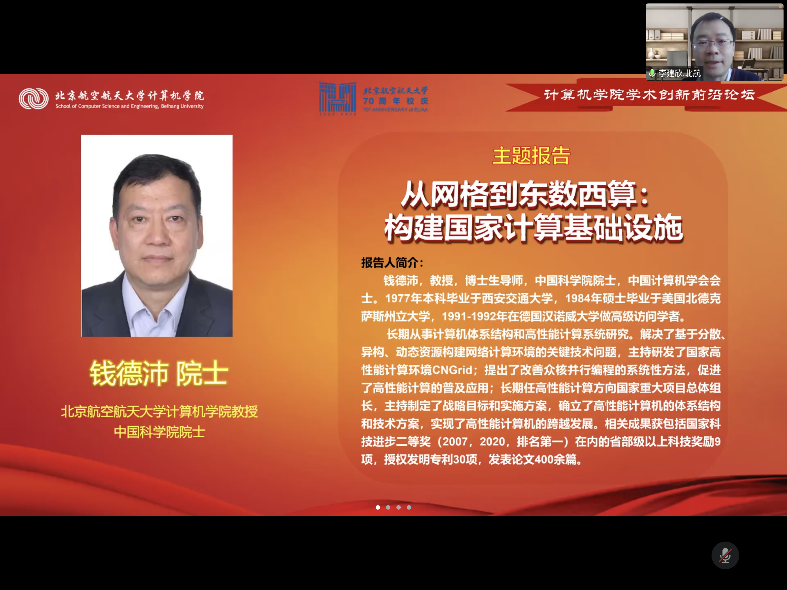 为迎接北航70周年校庆,加强校友联系。10月22日上午,世俱杯sjb官网邀请钱德沛院士作题为“从网格到东数西算:构建国家计算机基础设施”的主题报告。报告由学院党委书记李建欣主持,各级校友聆听了此次报告。