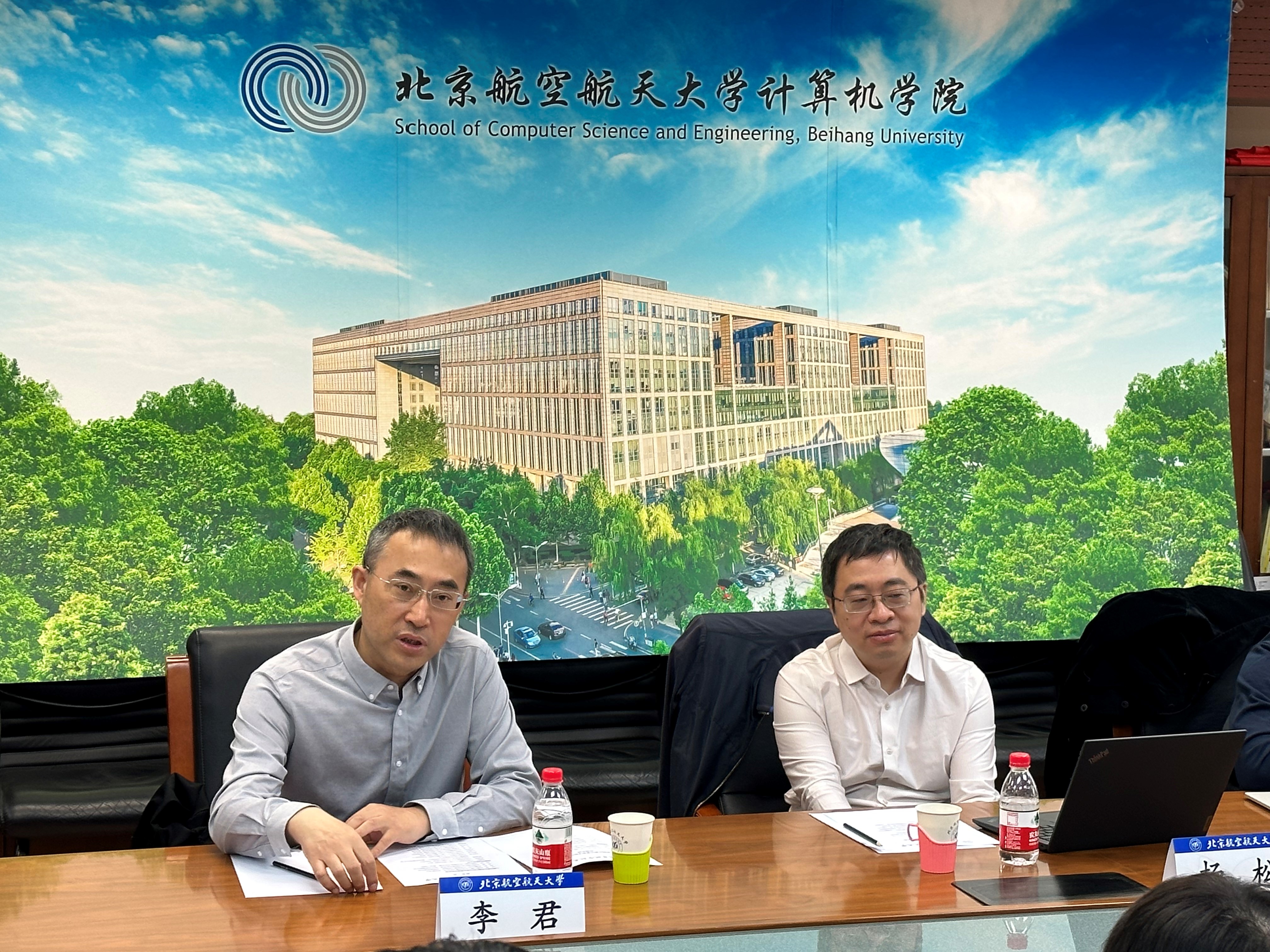 4月14日上午,人民日报社传播内容认知全国重点实验室专职副主任李君、科技发展部主任杨松、科技发展部副主任张峥、算法工程师闫洲一行4人到北航世俱杯sjb官网交流,世俱杯sjb官网院长王蕴红、党委书记李建欣、软件学院院长胡春明、刘祥龙副院长出席会议。