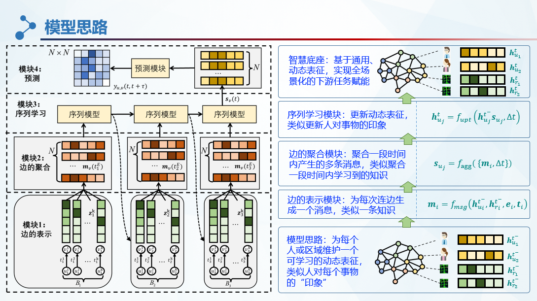 项目介绍:该作品围绕智慧交通系统,针对现有方法中所存在的“单模型-单任务”和静态表征两个问题,提出基于通用动态图表示学习的交通流预测方法,相关研究成果发表于CCF-A类国际顶级学术会议IJCAI和AAAI。该方法类似于BERT, ChatGPT等大规模预训练模型,可以通过自监督学习构建交通站点的通用、动态表征,进而赋能多重下游预测任务,符合当下人工智能领域的发展趋势。研究过程中,已经在北京地铁、纽约出租车等大规模真实数据进行了验证,探索了在实际场景中的适用性。